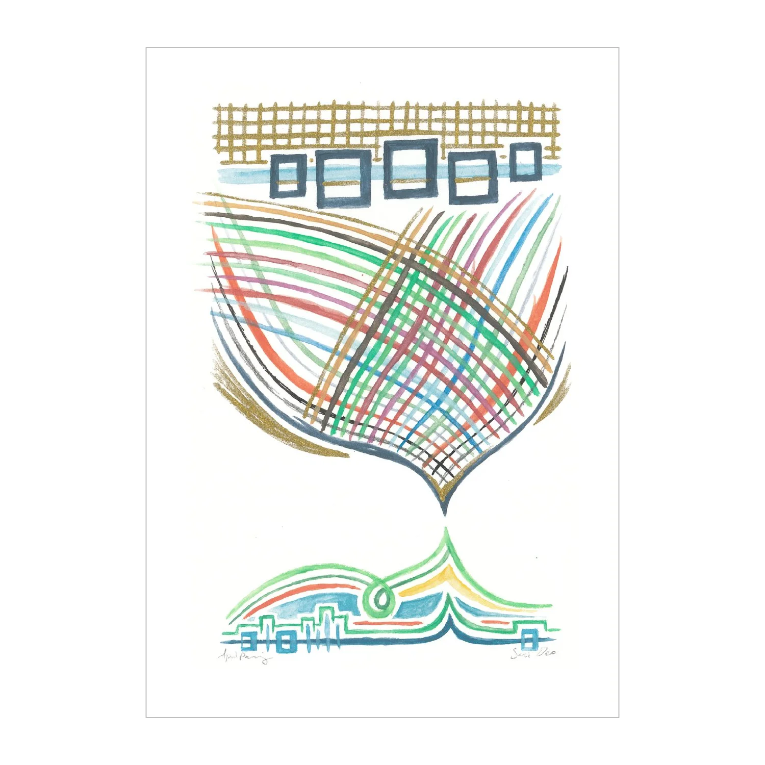 April ‘24, Watercolor pencil, gold calligraphy ink, 7” x 10”
