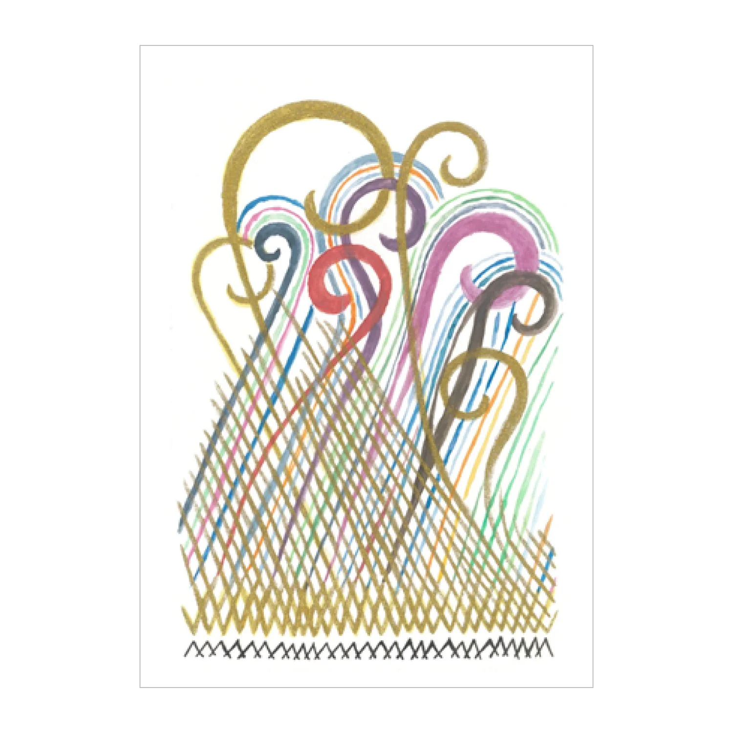 May ‘25, Watercolor pencil, gold calligraphy ink and pencil, 4” x 6”
